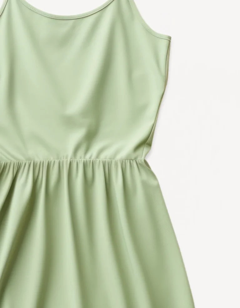 This sleeveless dress offers a lightweight and airy feel, perfect for warm days. Featuring a relaxed fit with an elastic waist, it combines comfort and effortless style for any casual occasion.