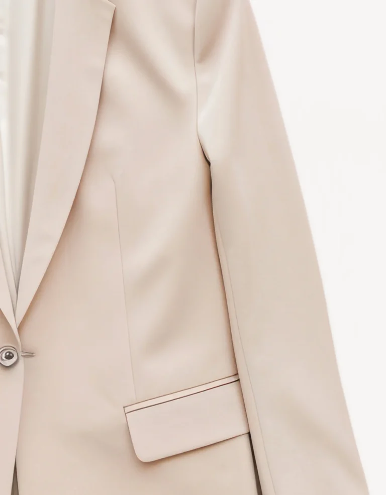 Designed for a sophisticated and timeless look, this single-button blazer is a versatile addition to any wardrobe. The tailored fit and structured design create a polished silhouette, perfect for office wear, formal occasions, or smart-casual styling. Featuring classic lapels, functional flap pockets, and a smooth lining, it ensures both comfort and elegance. The lightweight fabric allows for effortless layering over blouses, shirts, or dresses, making it suitable for various seasons. Whether paired with trousers for a business-ready outfit or styled with jeans for a relaxed yet refined look, this blazer is an essential piece for any modern wardrobe.