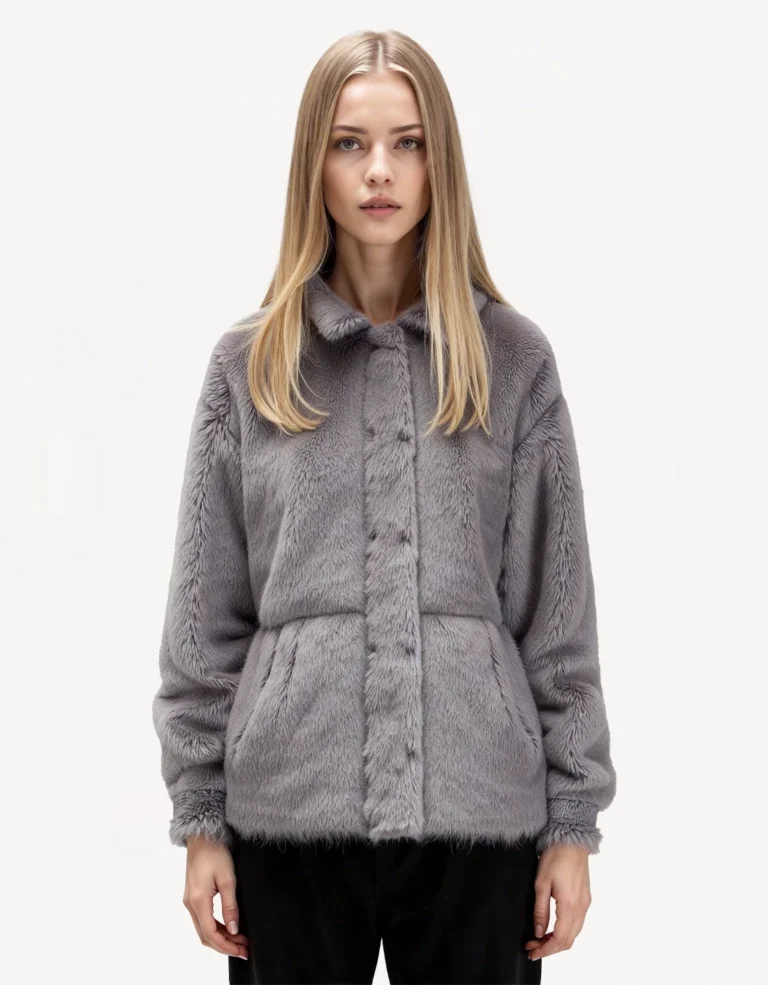 This zip-up jacket offers a relaxed fit with a soft fleece texture for ultimate comfort. Featuring ribbed cuffs, a high collar, and side pockets, it’s perfect for layering in cooler weather or casual everyday wear.